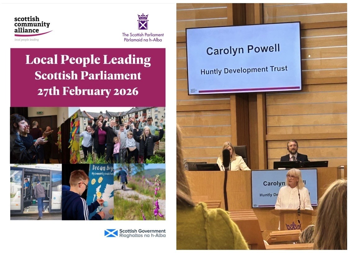HDT were honoured to be invited to deliver a presentation about our work in Huntly at the Scottish Community Alliance, Local People Leadingevent held in the stunning surroundings of the Holyrood Chamber on February 27th. There were around 300 attendees from across the sector including funders and representatives from Scottish Government, and we heard so many inspirational stories about the work being carried out by dedicated organisations to benefit communities across Scotland.